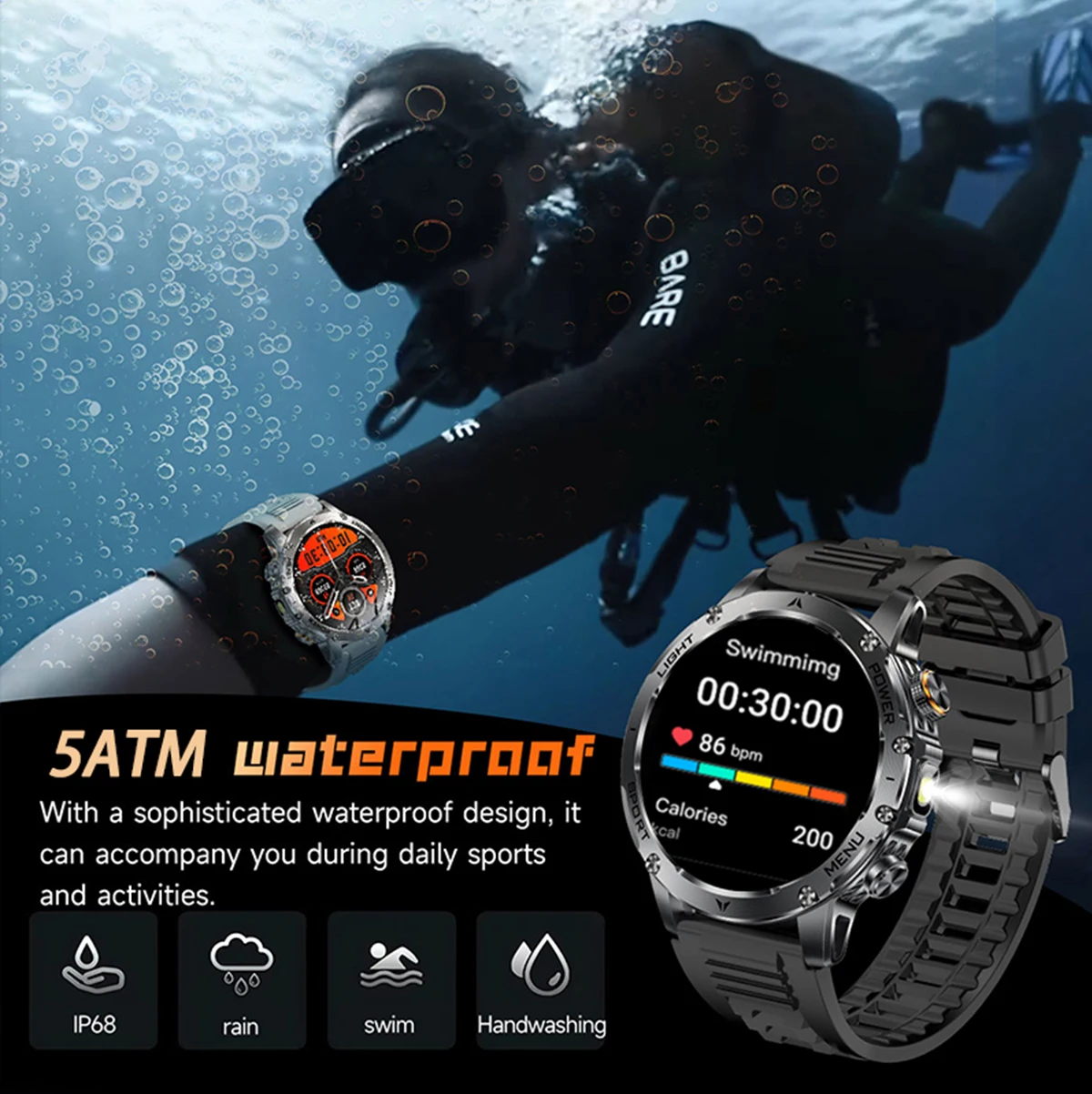100+sports modes: LED flashlight